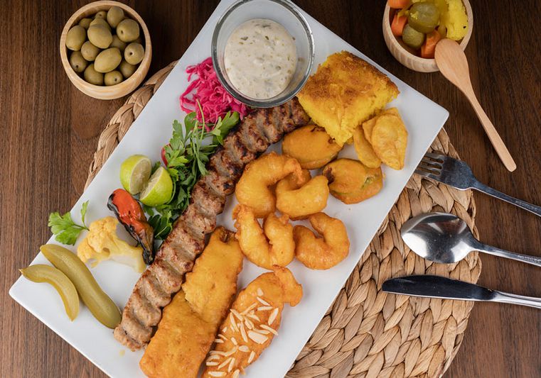 Shrimp,Shourideh Fish ,Chinese Tempura, Kebab-E-Koobideh