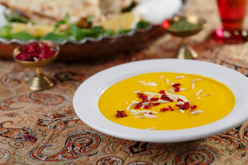 Traditional Dessert of Esfahan includes:Strained Yogurt,Lamb Neck Meat,Saffron and Sugar